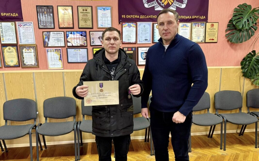 Міський голова Христинівки Микола Наконечний вручив відзнаку Міністерства оборони України «За поранення» захиснику України — Владиславу Семенді.