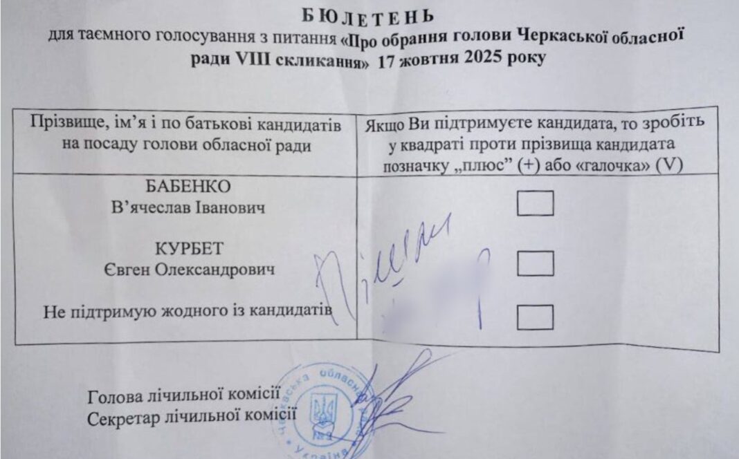 Під час голосування за голову Черкаської обласної ради деякі депутати псували бюлетені «аморальними» написами.