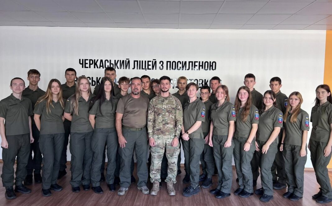 У Черкаському ліцеї з посиленою військово-фізичною підготовкою імені Захисників України відбулася зустріч десятикласників із воїном-захисником Олександром Кузьменком.