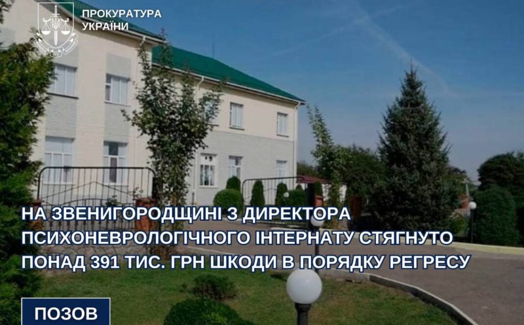 З директора психоневрологічного інтернату на Звенигородщині через суд стягнуто матеріальну шкоду в сумі понад 391 тис. грн у порядку регресу.