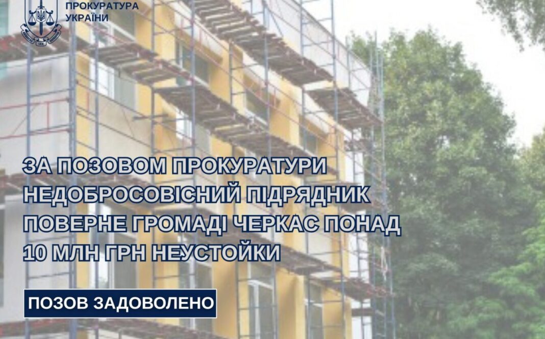 11 грудня 2025 року Господарський суд Черкаської області задоволив позов прокуратури щодо розірвання договору та стягнення штрафу з недобросовісного підрядника.