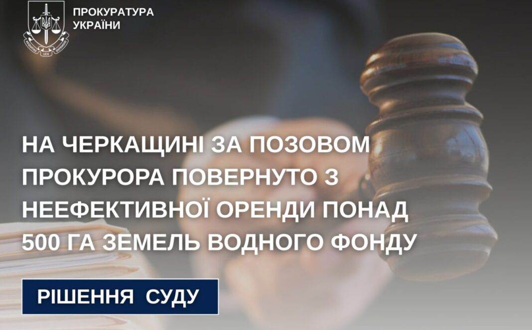 Понад 500 га земель водного фонду на Черкащині повернули до держвласності