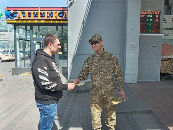 Протягом дня бійці батальйону працювали у таких популярних місцях міста, як ТРЦ, де роздали черкасцям близько 500 інформаційно-агітаційних буклетів.