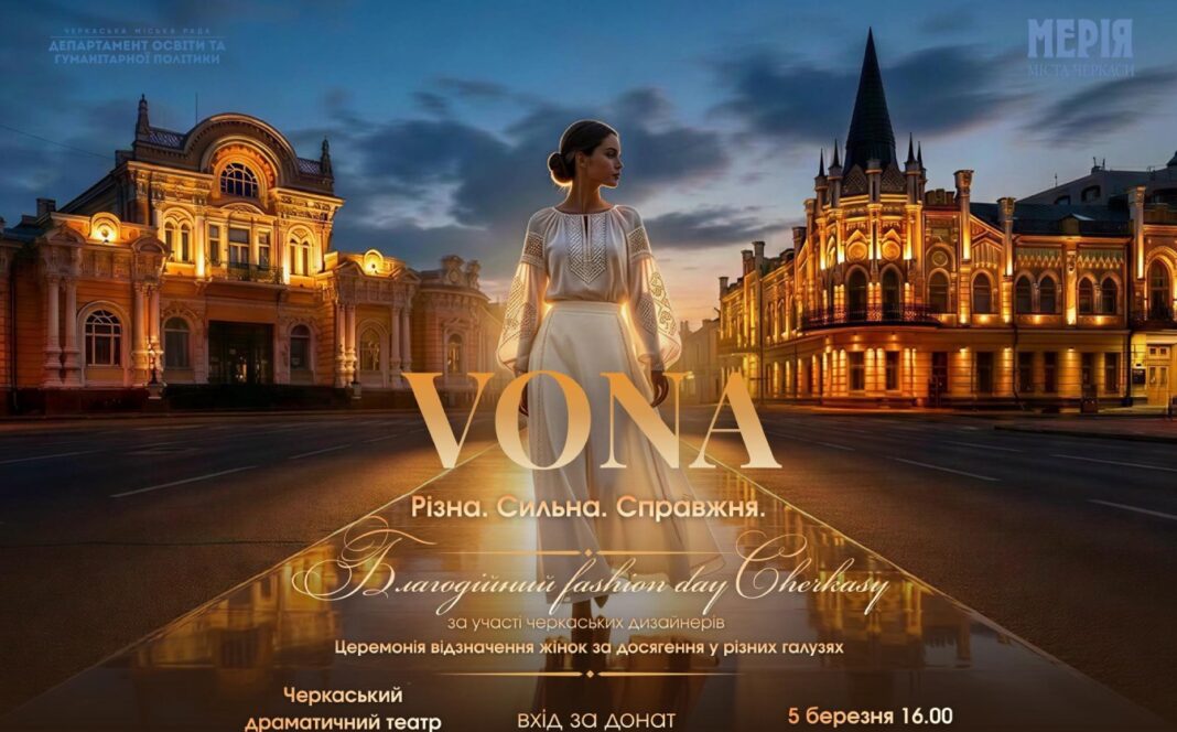 Уже зовсім скоро, 5 березня о 16:00, у Черкаському обласному драматичному театрі імені Тараса Шевченка відбудеться Благодійний Fashion Day Cherkasy «VONA» — подія про вдячність, силу та людей, які творять сучасні Черкаси.