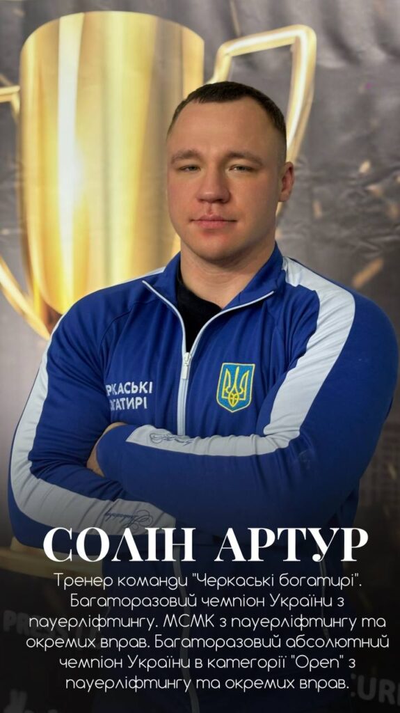 Артур Солін — тренер СК “Черкаські богатирі”, майстер спорту міжнародного класу з паверліфтингу.