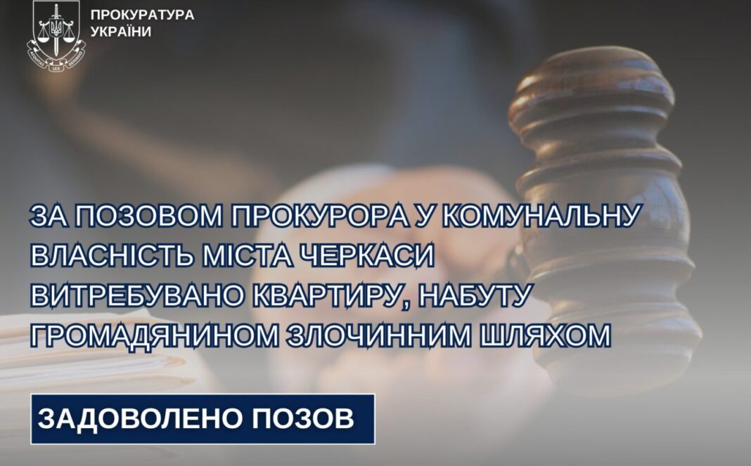 За позовом прокурора у комунальну власність міста Черкаси витребувано квартиру, набуту громадянином злочинним шляхом.