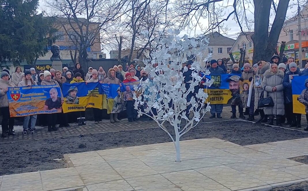 Під час відкриття інсталяції сім’ї захисників, яких чекають, кріпили до гілок Дерева надії замочки у формі серця зі стрічками та іменами своїх рідних.