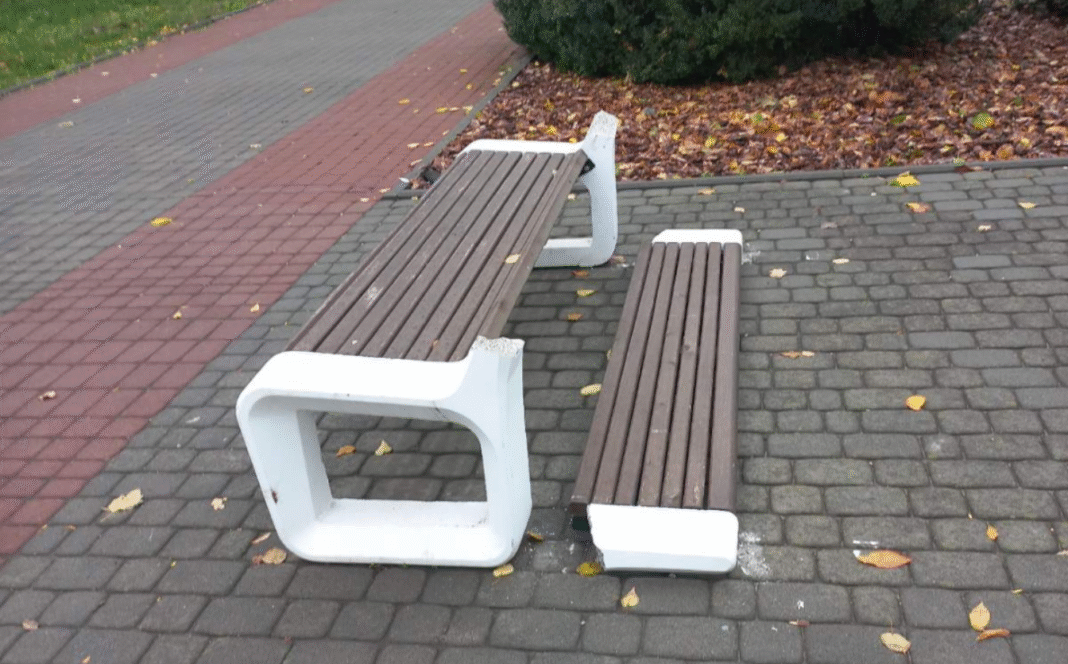У парку Соборному невідомі особи розбили новеньку лавку.