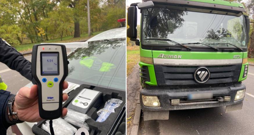 Спілкуючися з керманичем “Auman”, поліцейські виявили в останнього ознаки алкогольного сп’яніння та запропонували пройти відповідний огляд за допомогою приладу “Драгер”, на що чоловік погодився. Результат — 1,51 проміле.