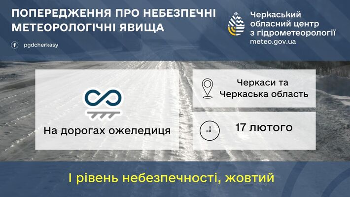 Завтра, 17 лютого, на території Черкаської області — ожеледиця.