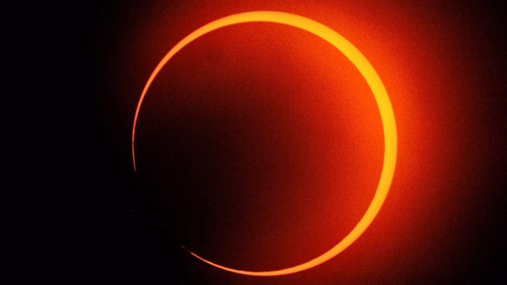 Під час кільцеподібного затемнення Місяць перебуває трохи далі від Землі на своїй орбіті. Через це він не повністю перекриває Сонце, і навколо темного диска залишається яскравий обідок світла — те саме «вогняне кільце». За словами Ллами, у цей момент «наче вирізають серцевину Сонця».