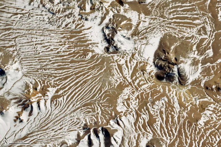 Згідно з останніми даними моніторингу, потужний холодний циклон, що прийшов з боку Тихого океану, спричинив сильні опади в одному з найпосушливіших місць на Землі. Сніговий покрив зафіксовано не лише на високогірному плато Чахнантор (5000 метрів над рівнем моря), де розташовані антенні грати, а й на критично низькій для таких явищ висоті 2900 метрів, у районі Центру технічної підтримки (OSF).