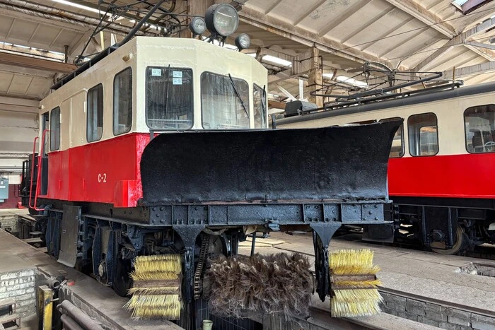 Нагадаємо, у столиці провели середній ремонт найстаршого вагона-снігоочисника на базі Дарницького трамвайного депо. Вагони-снігоочисники обслуговують трамвайні маршрути як на правому, так і на лівому березі столиці.