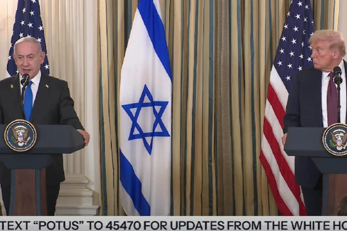 Президент США Дональд Трамп та прем'єр-міністр Беньямін Нетаньягу провели спільну пресконференцію. Нетаньягу заявив, що підтримує план Трампа щодо завершення війни в Газі, який реалізує цілі Ізраїлю, включно з поверненням заручників. Про це пише «Главком» з посиланням на трансляцію Білого дому.