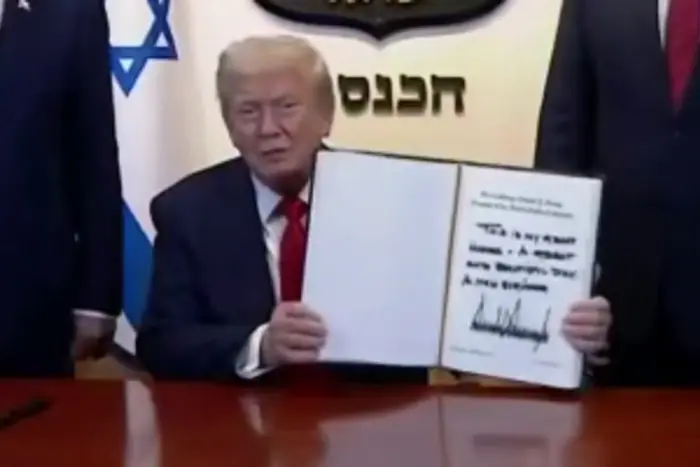 Також у Кнесеті Ізраїлю Трамп підписав гостьову книгу. «Це моя велика честь – великий і прекрасний день. Новий початок», – написав він.