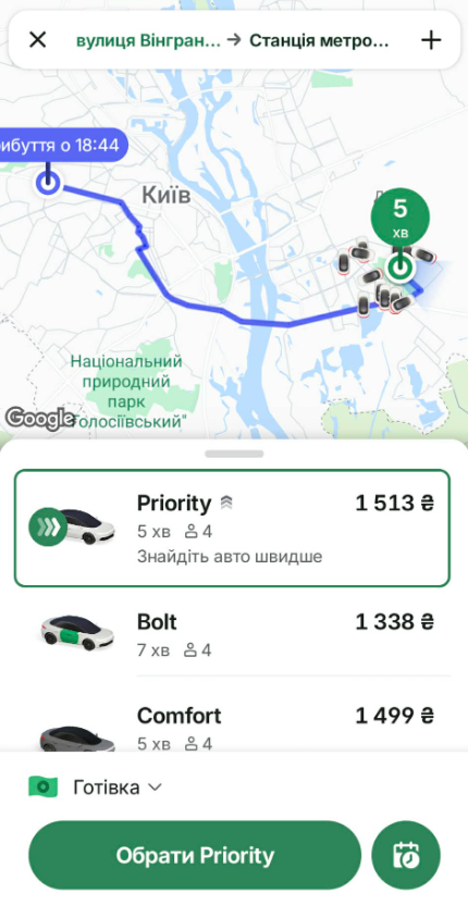 Зокрема, поїздка з вулиці Вінграновського до станції метро «Шулявська» обійдеться щонайменше у 1338 грн.