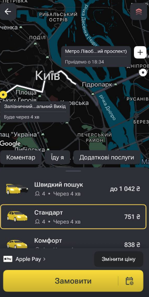 За поїздку від метро «Лівобережна» до залізничного вокзалу доведеться заплатити мінімум 751 грн.