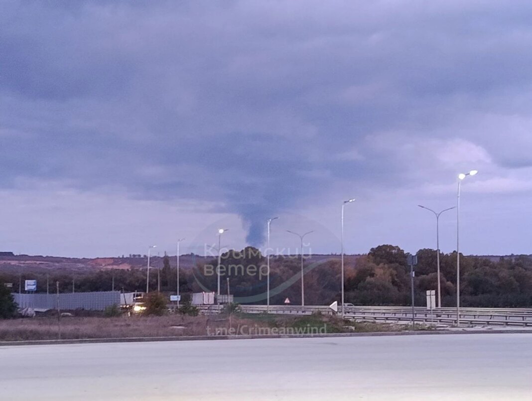 Палаючу нафтобазу в Гвардійському, як повідомляється, видно і з Білогірського району.