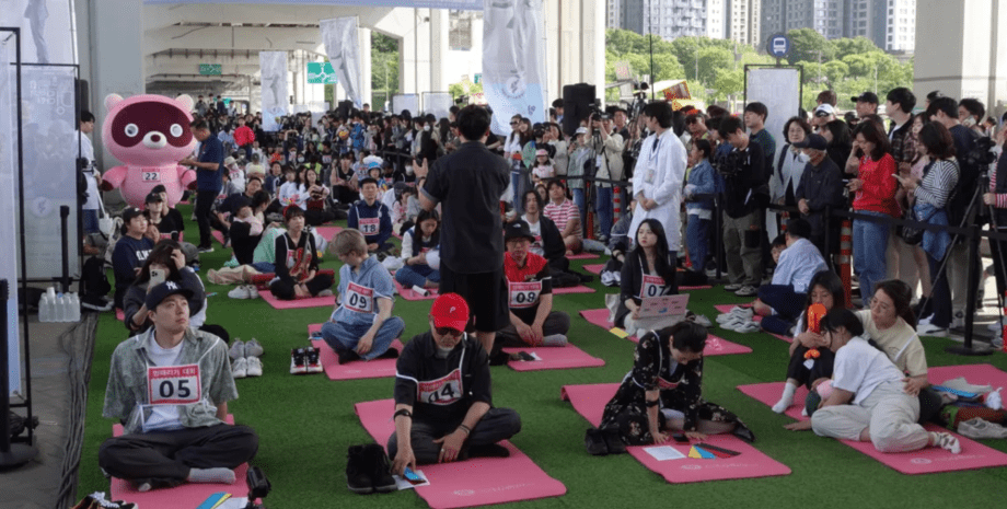 Понад 100 людей зібралися в одному місці для того, щоб мовчки посидіти на килимках для йоги й абсолютно нічого не робити. Спеціальний захід проводиться в Сеулі вже в 10-й раз і це є одночасно фізичним випробуванням і відпочинком.