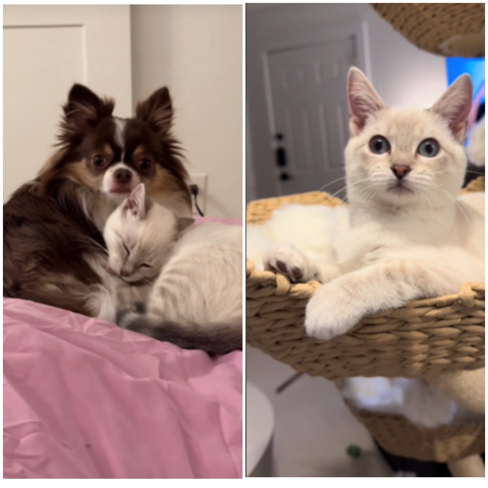 Жінка прихистила кішку, коли та була ще маленьким кошеням, у дім, де вже проживав довгошерстий чихуахуа на прізвисько Елфі. Але з часом вона зрозуміла: тепер у неї "дві собаки".