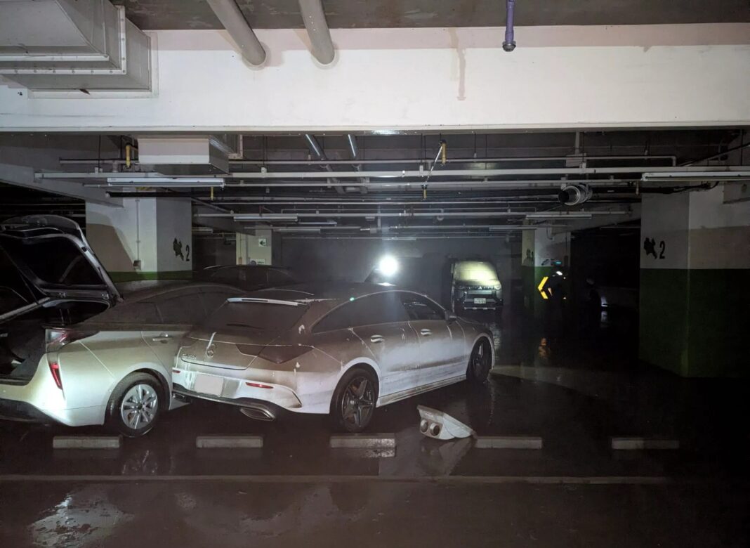 Перший поверх підземного паркінга висотою 3,5 м повністю затопило, а на другому рівень води сягнув 1,2 м. На той час на стоянці перебувало 274 автомобілі.