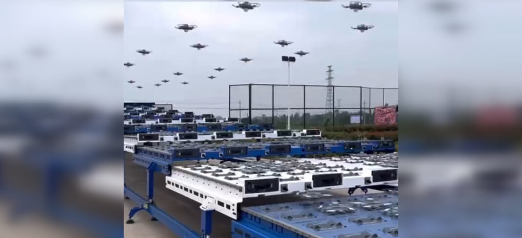 Китайська компанія DAMODA продемонструвала систему автоматизованого розгортання тисяч безпілотних літальних апаратів, які працюють роєм.